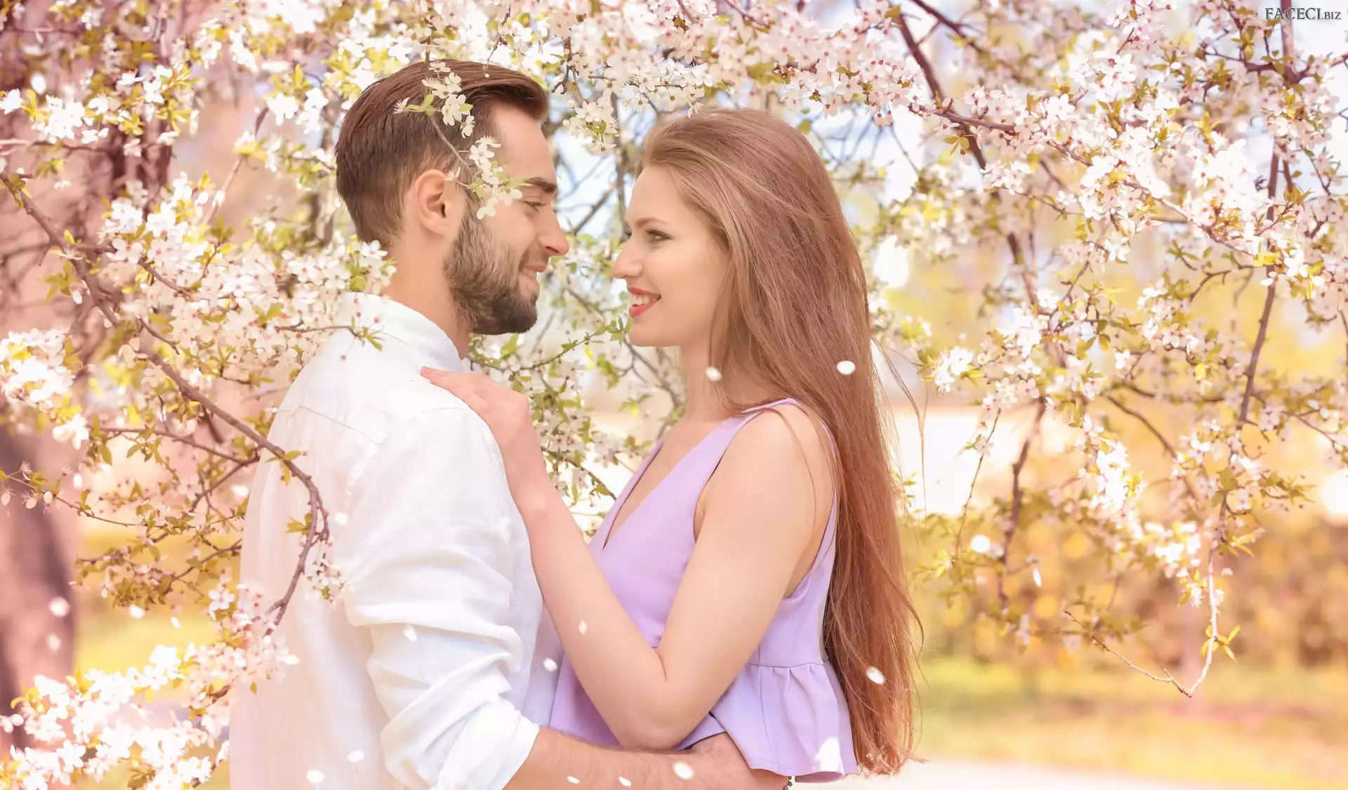 Drzewa, Kwitnące, Mężczyzna, Kobieta, Radość - faceci.biz